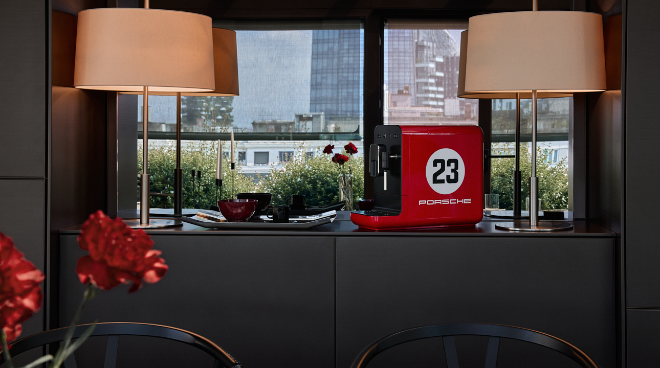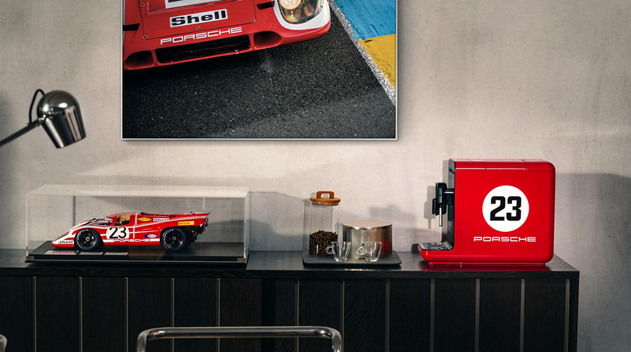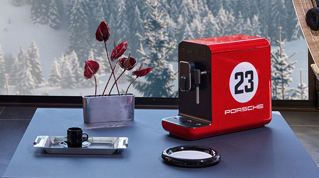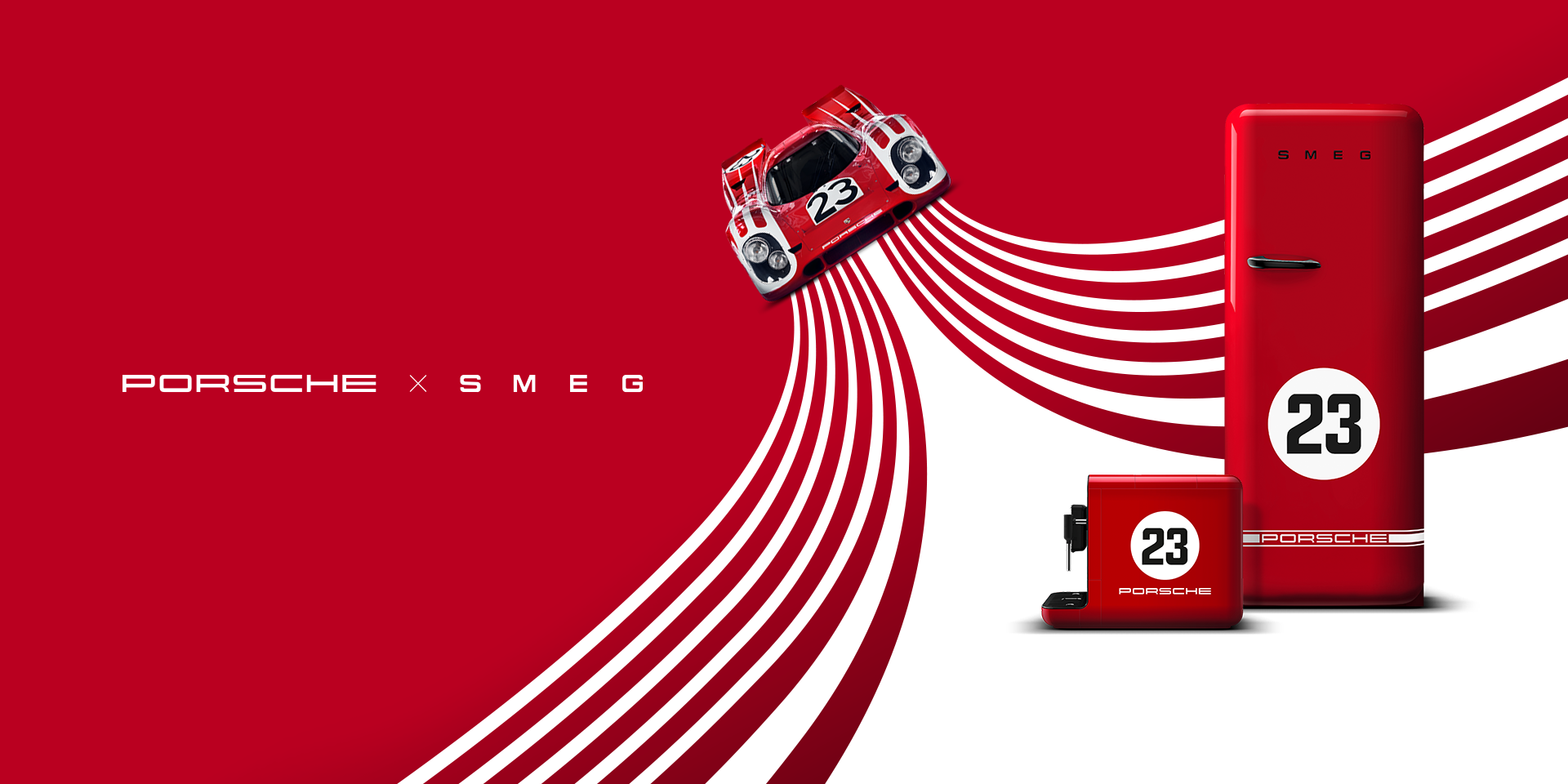The Porsche × SMEG FAB28 917 Salzburg wears the legendary red livery and racing stripes with matte‑black accents and a numbered authenticity plate. Limited to 1,970 pieces, it’s a statement of heritage crafted for everyday performance.